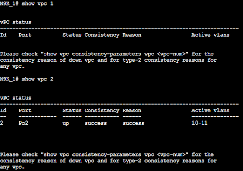 When showing vPCs the id for the keep-alive does not show when doing show vpc "id" like below. Only our peer-link shows up.